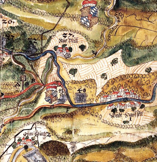 Weg zwischen Waidhaus (1 Weidt-Haussen, rechts) und Ödkührieth/Kühmühle