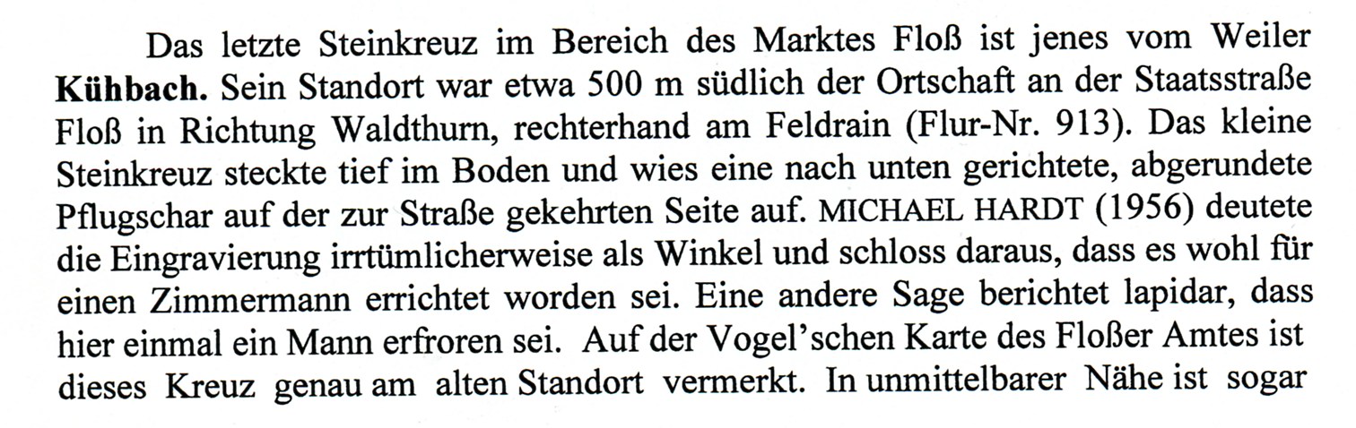 dass das Steinkreuzchen bei Kühbach, unmittelbar an der