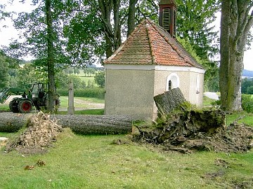 beschädigt; nahe der Kapelle am Weg zum Fahrenberg."