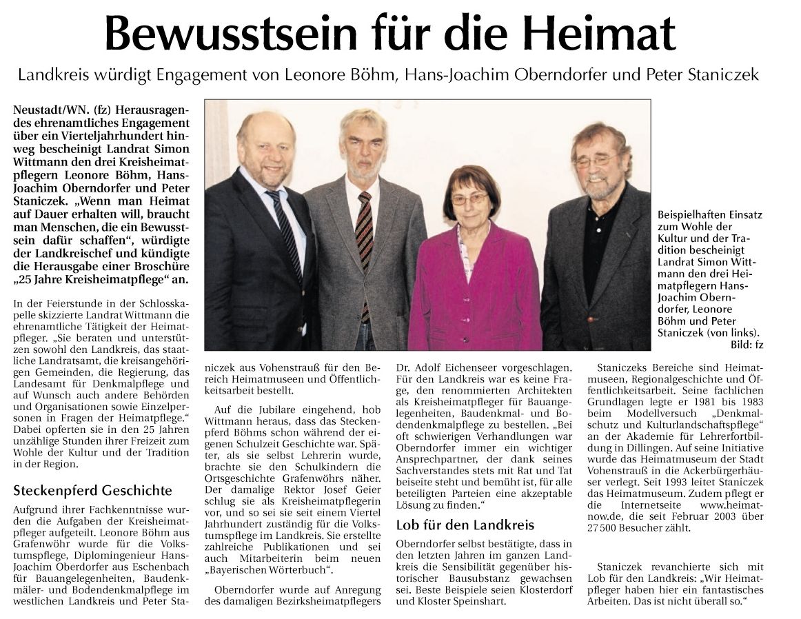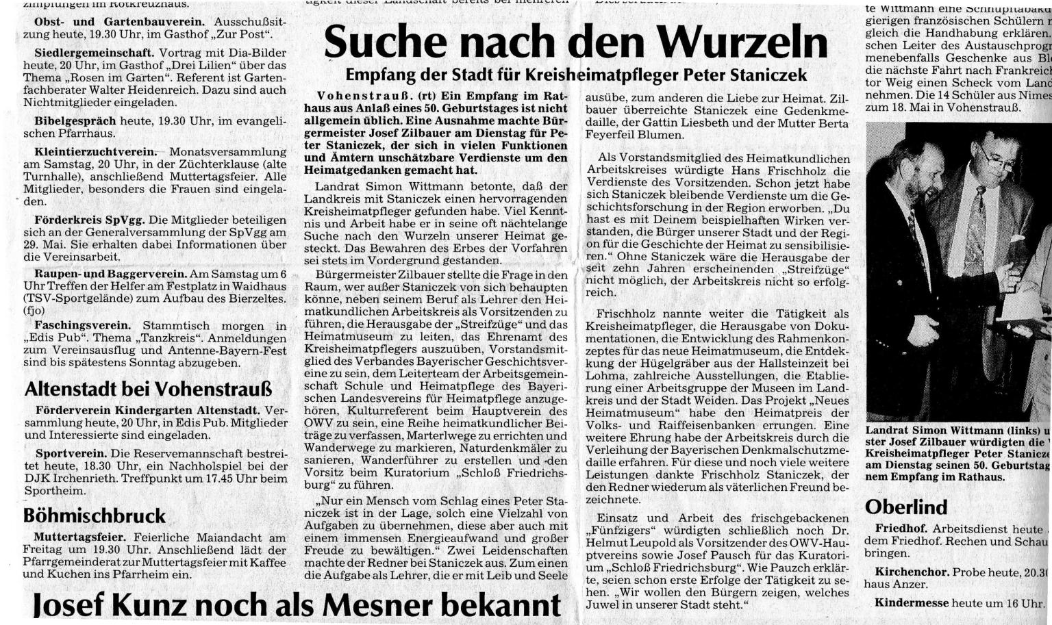 Vohenstrauß". "Ein besonderer Höhepunkt Ihrer heimatkundlichen