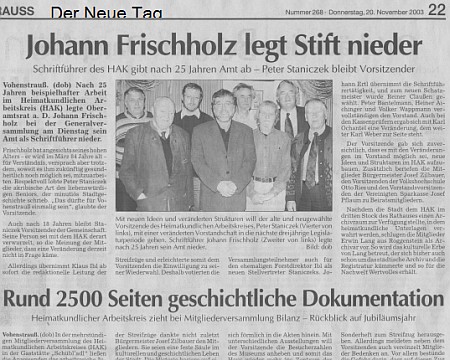 Johann Frischholz legt Stift niederSchriftführer des HAK gibt nach 25 Jahren Amt ab - Peter Staniczek bleibt
