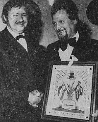 Der Eingang im Cafe Kohler war bereits am Freitag mit Birken geschmückt, doch nicht wie allgemein üblich stehend, vielmehr mit liegendem Laubgehölz. Zylinder und Gehrock waren Vorschrift, als es am Samstag zum großen Festbankett ins Schützenhaus ging. Der zwar nicht gewählte, doch allgemein anerkannte Präsident Horst Frötschl, begrüßte die „Burschen", die aus ganz Deutschland angereist waren und übergab nach kurzer Einleitung   an den Festredner   „Dany"   Müllner, dessen Rede so bemerkenswert war, daß sie in Auszügen wiedergegeben werden muß. „Blickt man in die Runde, so sieht man mehr fal­tige Gesichter, Burschen in dem besten Astronautenalter, kein Vergleich mehr mit den Gesichtern vor 25 Jahren. Nicht der Name hat es gebracht, daß dieser Freundeskreis 25 Jahre überdauerte, und es ist auch nicht all­täglich, daß der Zusammenhalt in dieser Verbindung so eng ist. Der Burschenverein ist mehr als ein Stammtisch, er ist der Garant für zahllose lustige Stunden, dazu gehört auch die Atmosphäre beim „Kohlerhardl". Soweit, dem Ernst der Stunde angepaßt und dann Humor in Vollendung.