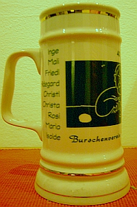 Zum 40-jährigen Jubiläum wurden alle Stammbedienungen seit Vereinsgründung auf dem limitierten, künstklerisch wertvollen Ehrenkrug verewigt