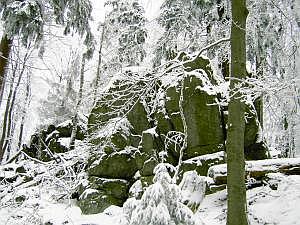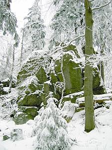 Stückbergmassiv ist voller bizarrer Felsgruppen. Am Gipfel, mitten im
