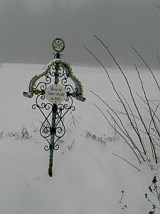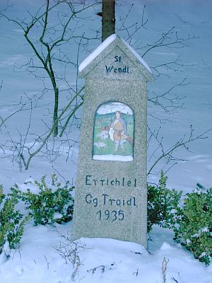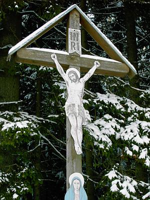 Marterl und historischer Wegweiser am Bibershof
