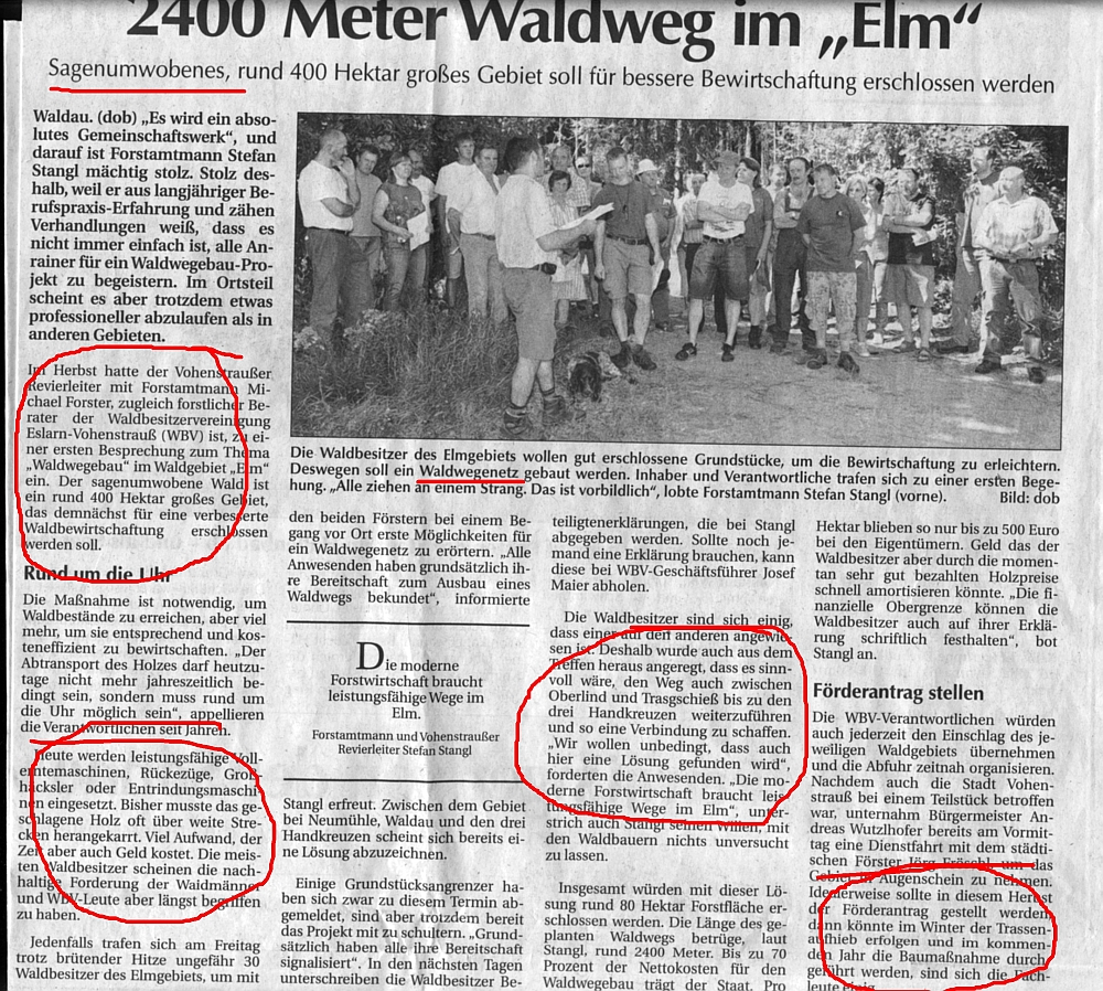 den in Wirklichkeit beabsichtigten Forststraßenbau. "Möglichst viele